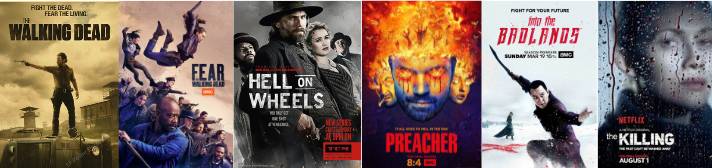 - Séries cultes : The Walking Dead, Fear the Walking Dead, Preacher, Hell on Wheels, Into the Badlands, The Killing, et d’autres titres emblématiques.