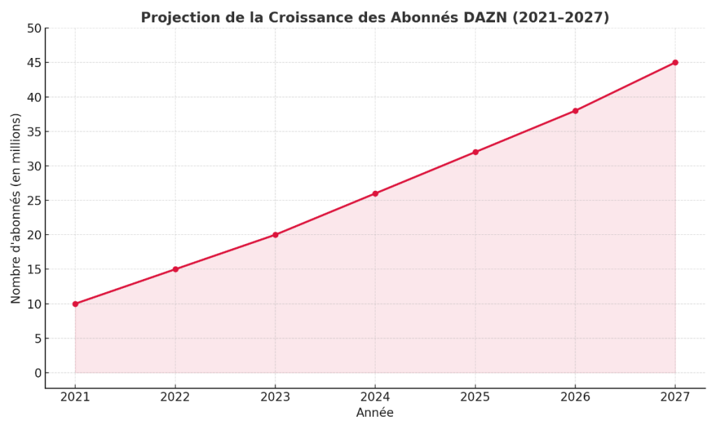 Projection de la Croissance des Abonnés DAZN (2021–2027)