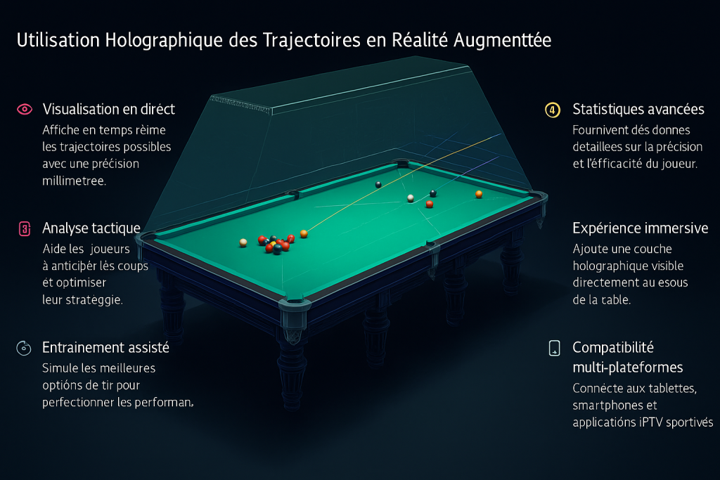 - La réalité augmentée s’impose dans le snooker live streaming, avec l’affichage des trajectoires possibles des billes pour aider le public à mieux comprendre la stratégie des joueurs.